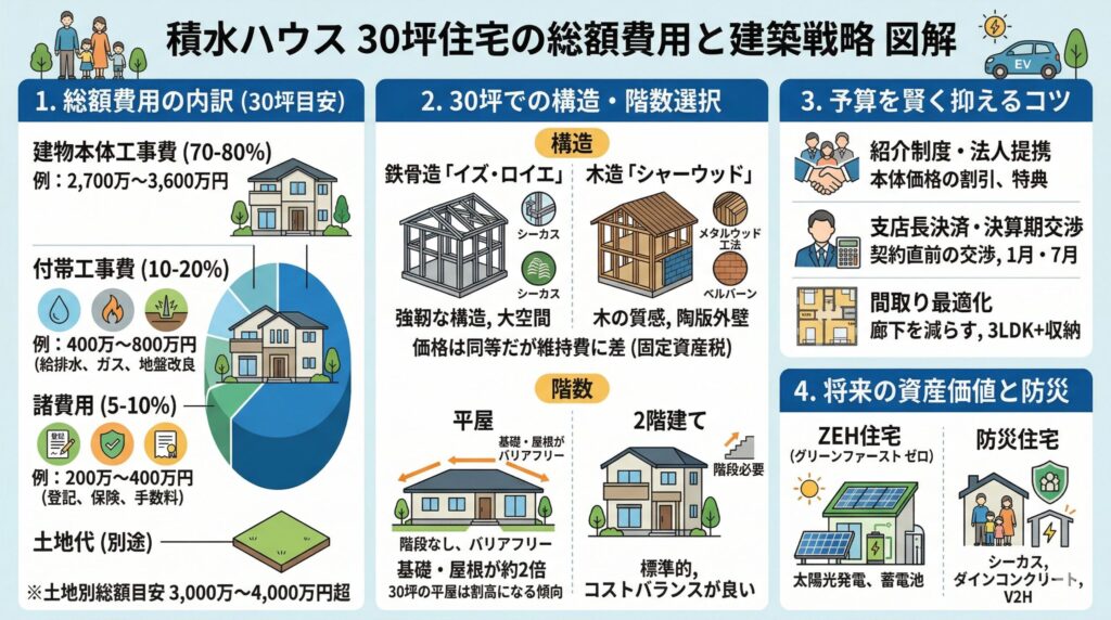 - 積水ハウスで30坪の家を建てる際の本体価格と総額の目安