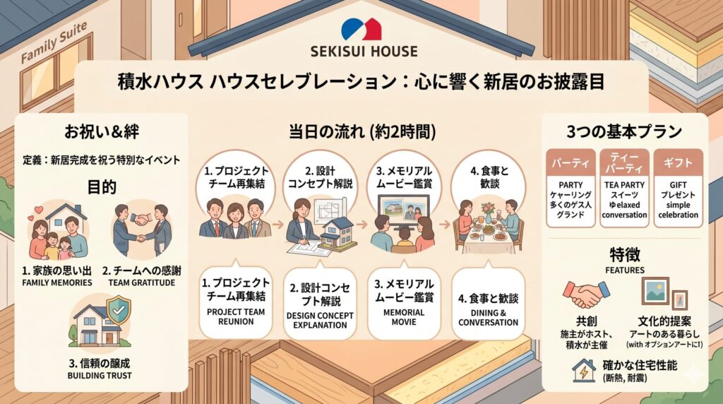 この章では、積水ハウスがオーナーのために用意しているハウスセレブレーションの基本的な仕組みや、当日の具体的な流れについて詳しくお話しします。